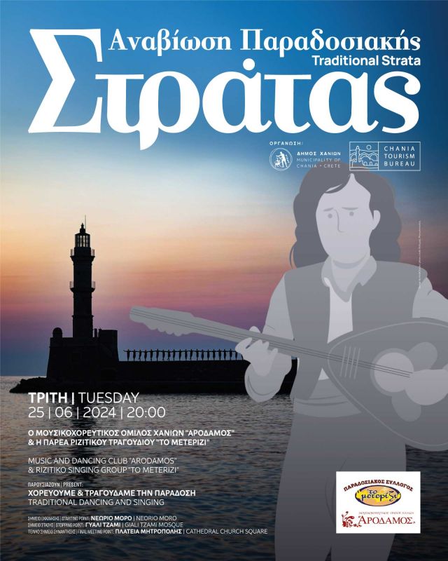 Το μουσικοχορευτικό δρώμενο της Παραδοσιακής Στράτας του Δήμου Χανίων αναβιώνει για 3η συνεχόμενη χρονιά και γεμίζει τα καλοκαίρια μας αλλά και τα σοκάκια της Παλιάς Πόλης και του Ενετικού Λιμένα Χανίων, με την παράδοση και την πολιτιστική κληρονομιά του τόπου μας.