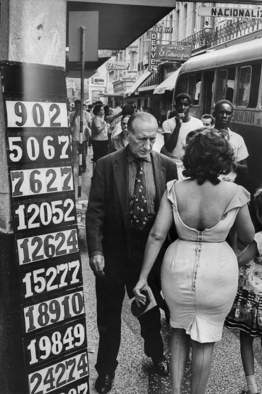 1/Ο φωτογράφος Marc Riboud, στους δρόμους της Αβάνας,καρφώνει το βλέμμα του στην Κουβανή κυρία με τις σούπερ καμπύλες. Αριστερά τα αποτελέσματα της Εθνικής Λοταρίας - Νοέμβριος του 1963