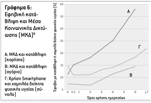 Οι παραπάνω επιθυμίες αφήνουν ένα αποτύπωμα ευρύτερης συμπεριφοράς που καταγράφεται στατιστικά. Οι δείκτες της εφηβικής ψυχικής υγείας σημειώνουν ραγδαία επιδείνωση στο ίδιο χρονικό διάστημα, που διενεργούνται όλες αυτές οι αλλαγές. Και μία λεπτομέρεια που καταγράφει πολύ εύστοχα ο Νικόλας Δημητριάδης σε σχετικό του άρθρο στο Άρδην τ.126. Την επίδραση του περιβάλλοντος έρχεται να επιδεινώσει η αλματώδη πρόοδος της τεχνολογίας. Η γενικότερη επιδείνωση φαίνεται ότι σχετίζεται άμεσα με τη γενίκευση της χρήσης των «smartphones» και των μέσων κοινωνικής δικτύωσης. Όσο αυξάνεται ο εθισμός στα κοινωνικά δίκτυα, τόσο επιδεινώνεται η ψυχική υγεία των νέων.12 α