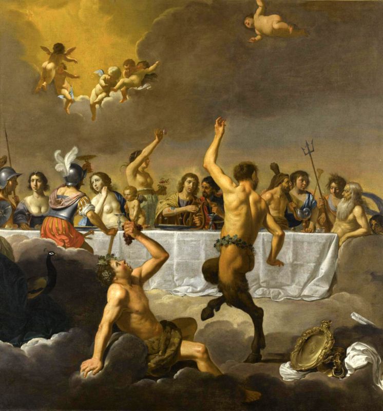 Στο έργο αυτό βλέπουμε τους Ολύμπιους θεούς να γιορτάζουν για τον γάμο. Στο κέντρο του τραπεζιού βρίσκεται ο Απόλλωνας (και όχι ο Χριστός), ενώ ο Διόνυσος κάνει αυτό που ξέρει καλά: πίνει, τρώει, γλεντάει, έστω κι αν δεν είναι... μπλε, όπως αυτός της τελετής έναρξης στο Παρίσι. Και αν η τεχνοτροπία του Biljert θυμίζει κάτι από... Ντα Βίντσι, «μπερδεύοντας» ίσως τους πολλούς, η εξήγηση είναι μάλλον απλή: ο Ολλανδός ζωγράφος πέρασε ένα μέρος της ζωής του στη Ρώμη και, όπως πολλοί ακόμα συνάδελφοί του, επηρεάστηκε από την τεχνη του Καραβάτζιο (1571-1610).