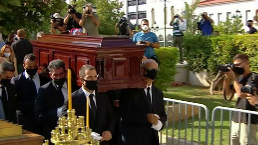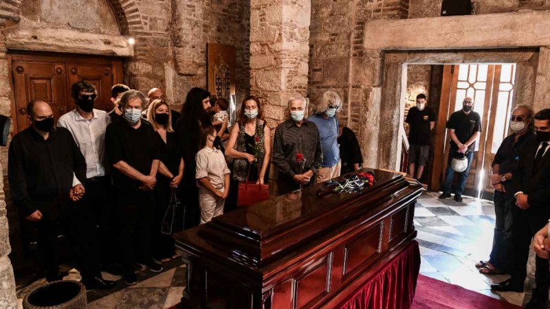 Το φέρετρο συνόδευε ο γιος του Μίκη Θεοδωράκη, Γιώργος, με την κόρη του Μυρτώ, ο Άγγελος, εγγονός του Μίκη με τον πατέρα του, Δημήτρη Παπαγγελίδη.
