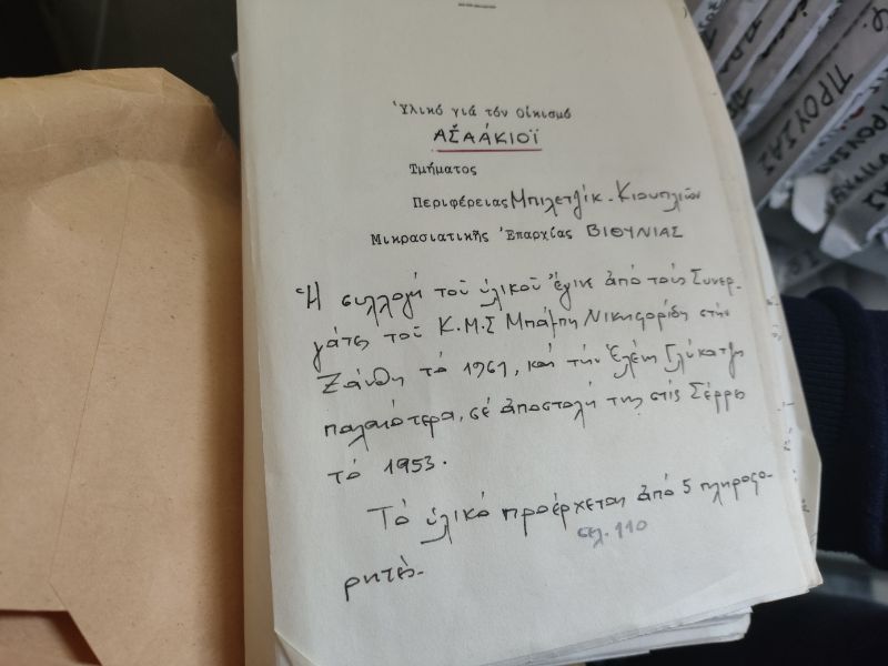Είχαμε την σπάνια ευκαιρία και τύχη να δούμε εντυπωσιακά τεκμήρια, όπως τη βιβλιοθήκη με πλήθος εκδόσεων σε καραμανλίδικη γραφή (δηλαδή τουρκική γλώσσα γραμμένη σε ελληνικό αλφάβητο), αλλά και καταγραφές που είχαν γίνει στις αρχές της δεκαετίας του 1950 από τη νεαρή τότε ιστορικό Ελένη Γλύκατζη, την πρόσφατα εκλιπούσα δηλαδή Ελένη Αρβελέρ. «Οι καταγραφές έχουν γίνει σε βάθος δεκαετιών και είναι αρχειοθετημένες με τοπικό χαρακτήρα, ανά περιοχή και οικισμό» μας εξηγεί ο κ.Καμούζης. «Αυτό βοήθησε χαρακτηριστικά και στην παραγωγή χαρτογραφικού υλικού υψηλής ακρίβειας, καθώς ως τότε οι υπάρχοντες χάρτες ήταν ελλιπέστατοι, απουσίαζαν πολλά ελληνικά χωριά που δεν τα γνώριζαν καν οι χαρτογράφοι» συμπληρώνει.