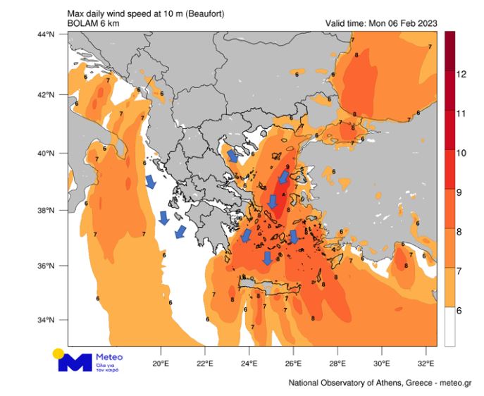 Βόρειοι βορειοανατολικοί άνεμοι εντάσεως 8 με 9 μποφόρ θα πνέουν στο Αιγαίο και από την Τρίτη (07/02/2023), σταδιακά θα εξασθενήσουν.