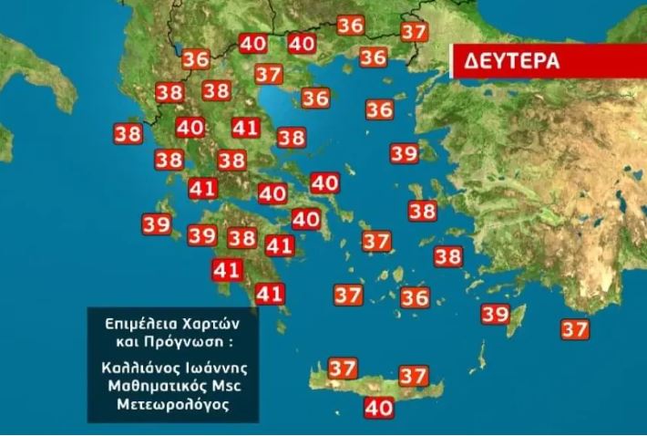 Με βάση τους χάρτες του μετεωρολόγου Γιάννη Καλλιάνου σήμερα στα νότια της Κρήτης θα δουν θερμοκρασίες 38 βαθμών κελσίου ενώ πιο δύσκολη μέρα θα είναι η Δευτέρα που θα πιάσει στα νότια του νησιού 40άρια