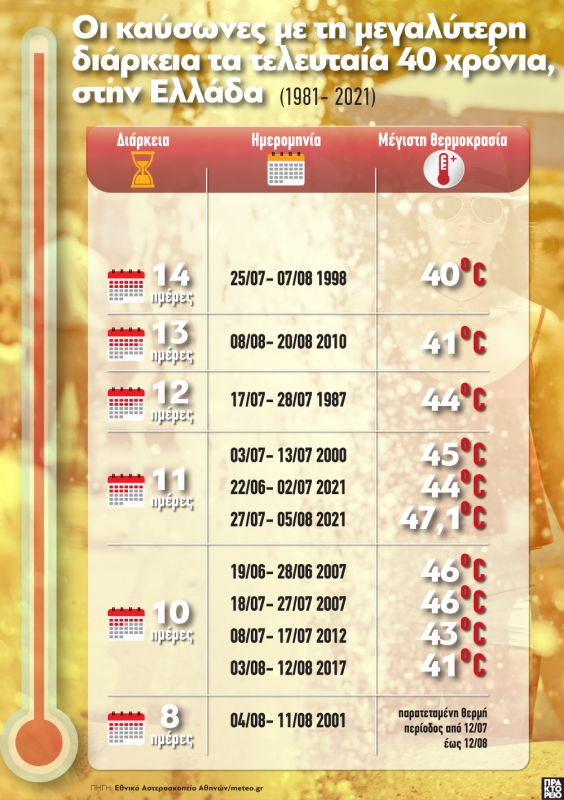 Οι πιο επίμονοι καύσωνες στην Ελλάδα τα τελευταία 40 χρόνια