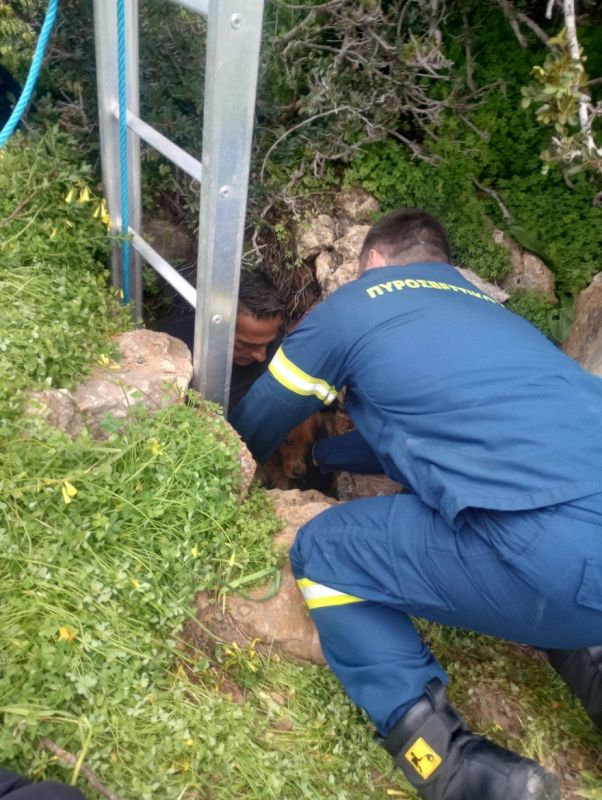Πυροσβέστης κατέβηκε στο πηγάδι με ειδικό εξοπλισμό και ανέσυρε τον σκύλο με ασφάλεια ενώ μόλις βρέθηκε στην επιφάνεια, του προσέφεραν νερό.