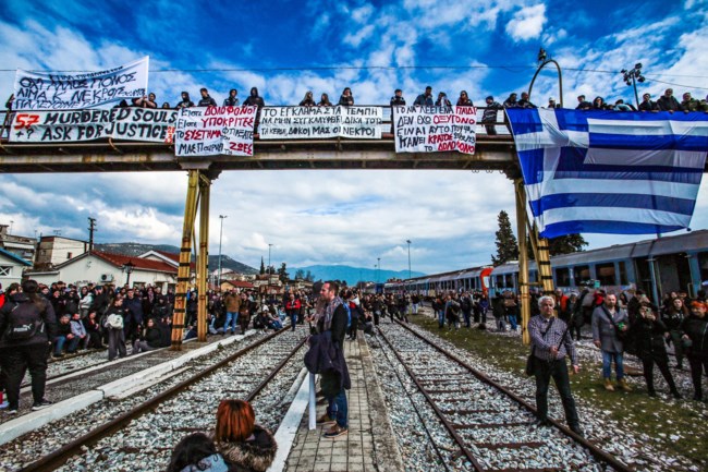 Λευκά γαρύφαλλα, στεφάνια δίπλα στις ράγες, μία καρδιά με κεριά που καίνε, στο παρεκκλήσι των νεκρών οικογένειες, που δεν έχασαν δικούς τους, έχασαν συνανθρώπους.