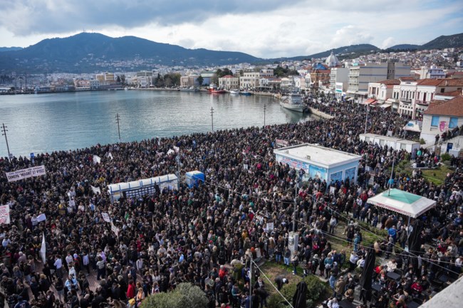 Τα χρώματα του Αιγαίου στο λιμάνι της Μυτιλήνης, ενώθηκε με την λαοθάλασσα του κόσμου.