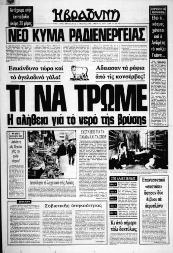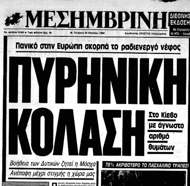 Ήταν τη Μεγάλη Τετάρτη, 30 Απριλίου 1986. Είχαν περάσει μόλις λίγα 24ωρα μετά την καταστροφή του πυρηνικού αντιδραστήρα στο Τσέρνομπιλ. Αρχίζουν τότε οι εφημερίδες στην Ελλάδα να ενημερώνουν – η κάθε μια με το δικό της τρόπο και ανάλογα με τη δική της κομματική και ιδεολογική γραμμή – για όλο αυτό το κακό, που είχε συμβεί στην πόλη Πρίπιατ της Ουκρανίας.