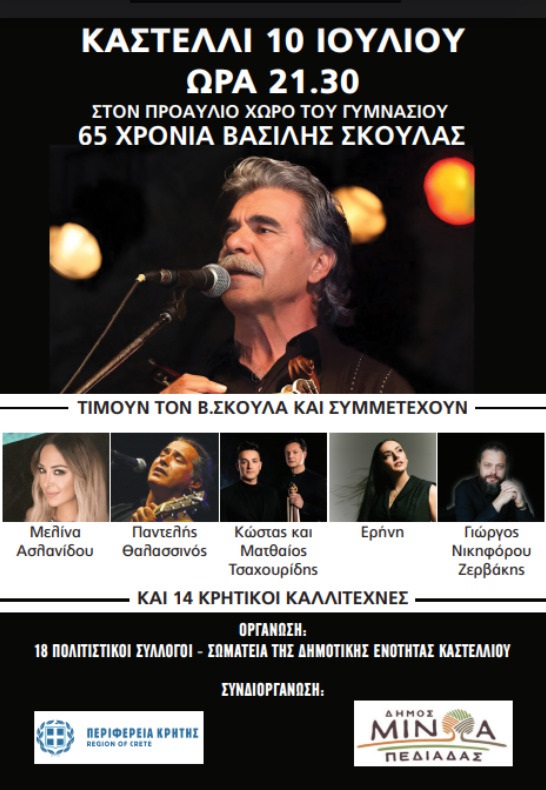 Εκδήλωση στα Καστέλλι για τα 65 μουσικά χρόνια του Βασίλη Σκουλά
