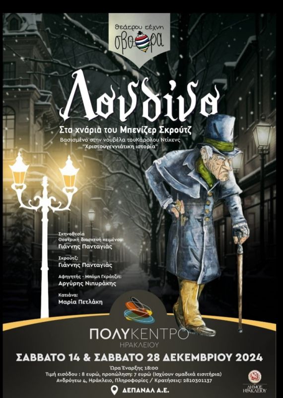 Λονδίνο Στα χνάρια του Εμπανίζερ Σκρούτζ βασισμένο στην νουβέλα του Κάρολου Ντίκενς «Χριστουγεννιάτικη ιστορία»