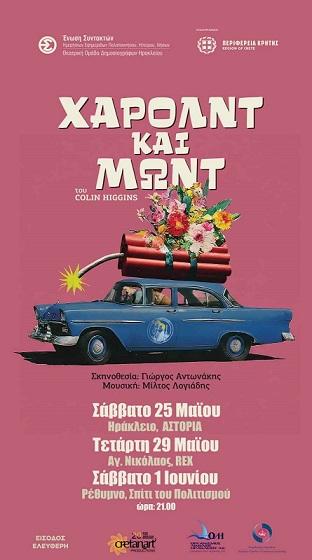 Η Θεατρική Ομάδα των Δημοσιογράφων Ηρακλείου της ΕΣΗΕΠΗΝ, σε συνδιοργάνωση με την Περιφέρεια Κρήτης, παρουσιάζει το αριστουργηματικό έργο του Κόλιν Χίγγινς «Χάρολντ και Μώντ» σε σκηνοθεσία Γιώργου Αντωνάκη και μουσική του Μίλτου Λογιάδη.