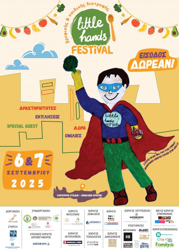 Το 2ο Φεστιβάλ Βρεφικής & Παιδικής Διατροφής «Little Hands Festival» επιστρέφει και πραγματοποιείται το Σαββατοκύριακο 6 και 7 Σεπτεμβρίου στον περιβάλλοντα χώρο του Παγκρητίου Σταδίου.