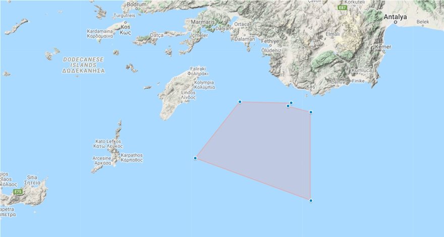 Η Τουρκία δεσμεύει περιοχές για ασκήσεις κοντά στο Καστελλόριζο (χάρτες)