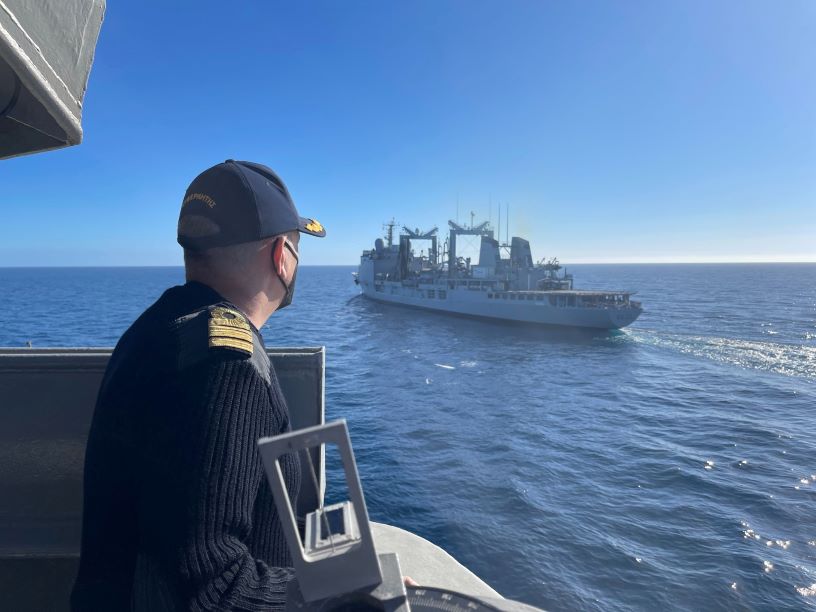 Η Φρεγάτα (Φ/Γ) ΑΔΡΙΑΣ εντάχθηκε από την Τετάρτη στην «Δύναμη Κρούσης Αεροπλανοφόρου» (Carrier Strike Group – CSG) του Γαλλικού Πολεμικού Ναυτικού, στο Στενό Σαρδηνίας – Κορσικής. Η ανωτέρω Ναυτική Δύναμη συνοδεύει το Γαλλικό Αεροπλανοφόρο CHARLES DE GAULLE, το οποίο αποτελεί και το Πλοίο Διοικήσεως της.