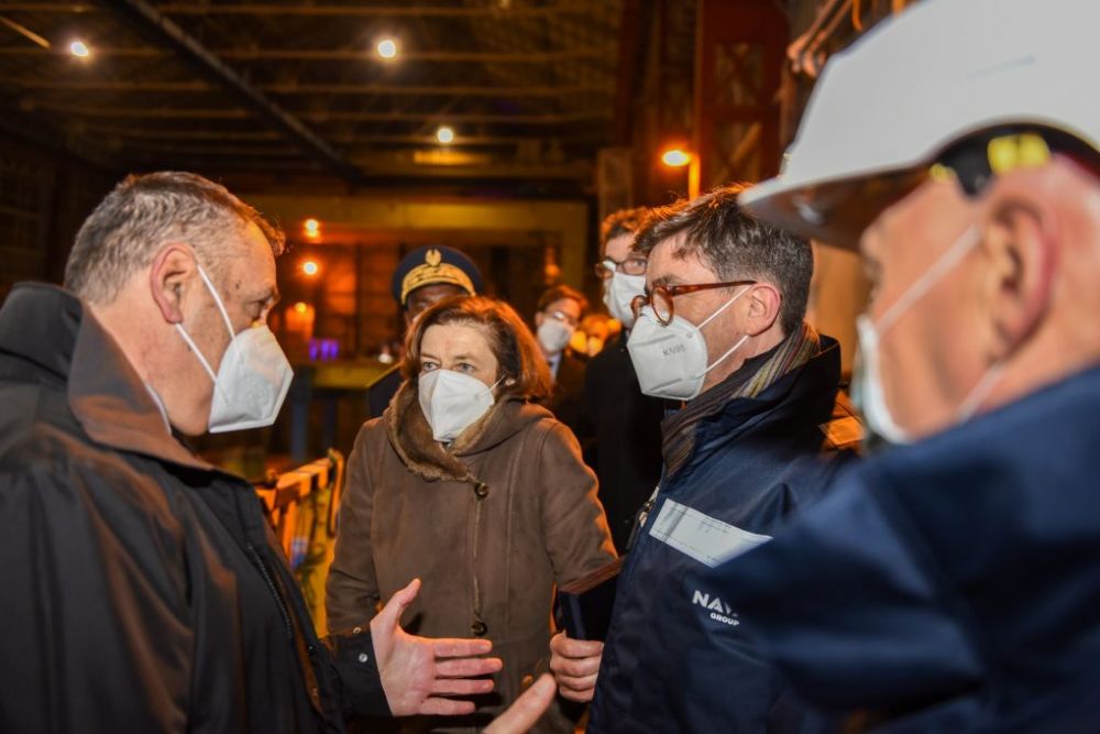 Τους Υπουργούς υπεδέχθη ο Πρόεδρος και Διευθύνων Σύμβουλος του Ομίλου κ. Πιέρ Ερίκ Πομμελέ (Pierre Éric Pommellet), ο οποίος τους ξενάγησε στις εγκαταστάσεις των ναυπηγείων και τους ενημέρωσε για τις δραστηριότητες και τις δυνατότητές τους.