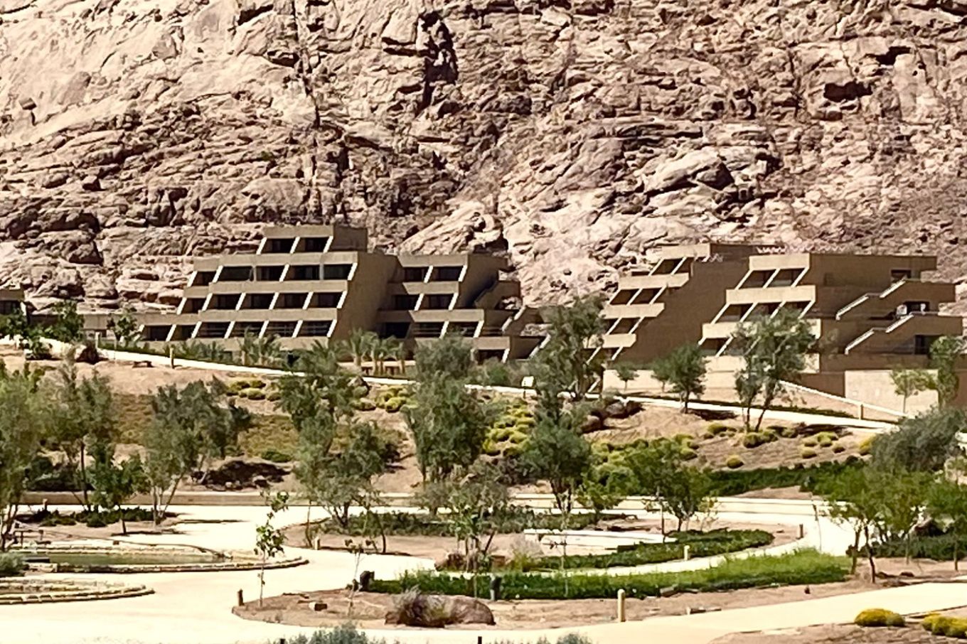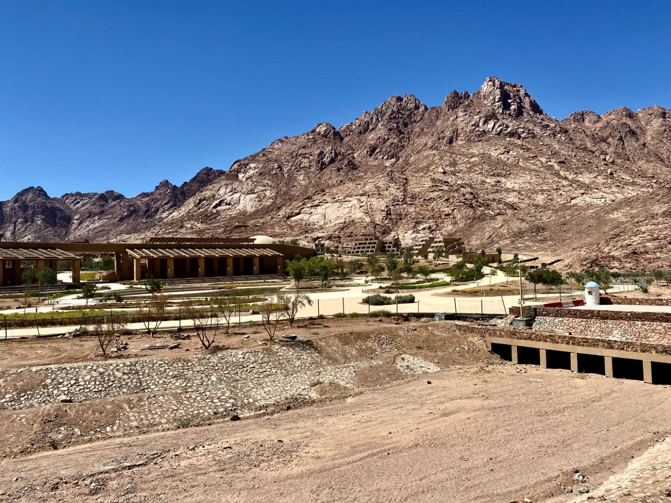 Κατηφορίζοντας τον ασύμμετρο δρόμο με τις στροφές που οδηγεί έξω από την περίμετρο της Μονής της Αγίας Αικατερίνης, η εικόνα που απλώνεται μπροστά σου είναι σχεδόν εξωπραγματική: μέσα στην καψαλισμένη από τον ήλιο κοιλάδα, σε απόσταση αναπνοής από τον ιερό τόπο, έχει ήδη αρχίσει να ξεδιπλώνεται ένα κολοσσιαίο τουριστικό πρότζεκτ.