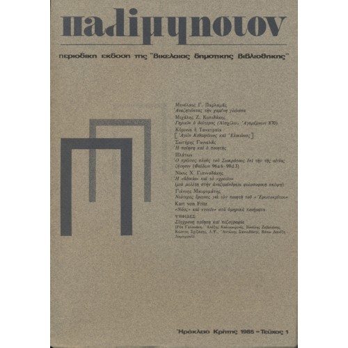 –Ναι, βασικά θέματα στην πρώτη του περίοδο έκδοσης είναι μελέτες γύρω από προβλήματα της κρητικής λογοτεχνίας της περιόδου της Ενετοκρατίας. Ακολουθούν προβλήματα της προσωκρατικής και εν γένει της αρχαίας φιλοσοφίας, κάτι που αποτελεί και προσωπικό μου ενδιαφέρον. Εργασίες σχετικά με τη γλώσσα, βασικές έννοιες-λέξεις, και δεν είναι τυχαίο ότι δημοσιεύτηκαν ήδη τρία κείμενα του Kurt von Fritz για την έννοια των λέξεων “νόος” και “νοείν” στα ομηρικά ποιήματα. Μας ενδιαφέρουν οι βιβλιογραφίες και ήδη έχει δημοσιευθεί η “Εργογραφία” του Ζήσιμου Λορεντζάτου και η “Βιβλιογραφία” της Κρητικής ιστορίας. Ετοιμάζουμε τώρα την έκδοση των Σεφερικών και των Καβαφικών, από τη βιβλιογραφική βέβαια σκοπιά, του καθηγητού Γιώργου Σαββίδη. Έχουμε στα σκαριά τη σύνταξη και άλλων βιβλιογραφιών κάτι που προσιδιάζει πάρα πολύ στο περιοδικό αυτό γιατί είναι έκδοση μιας ιστορικής Βιβλιοθήκης.