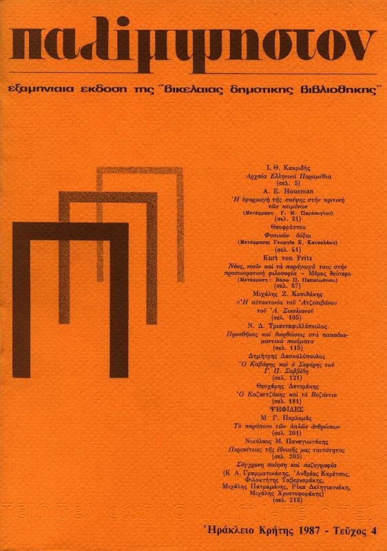 Λίγα για την προϊστορία αυτής της εκδόσεως. Από παλιά είχα εγώ προσωπικά τη σκέψη να εκδώσω, ιδίοις εξόδοις, ένα τέτοιο περιοδικό. Όταν έγινα έφορος της Βικελαίας Βιβλιοθήκης, άφησα αυτό το σχέδιο στην άκρη. Υπήρξε μια ευτυχής σύμπτωση να θέλει και ο φιλόμουσος Δήμαρχος Μανώλης Καρέλλης μια παρόμοια έκδοση να πραγματοποιηθεί στο Ηράκλειο. Τότε από τα συρτάρια μου όπου είχε καταχωνιαστεί το παλαιότερο σχέδιο πήρα τα δικά μου χαρτιά, τα προσάρμοσα στα νέα δεδομένα και έτσι ξεκίνησε η έκδοση.