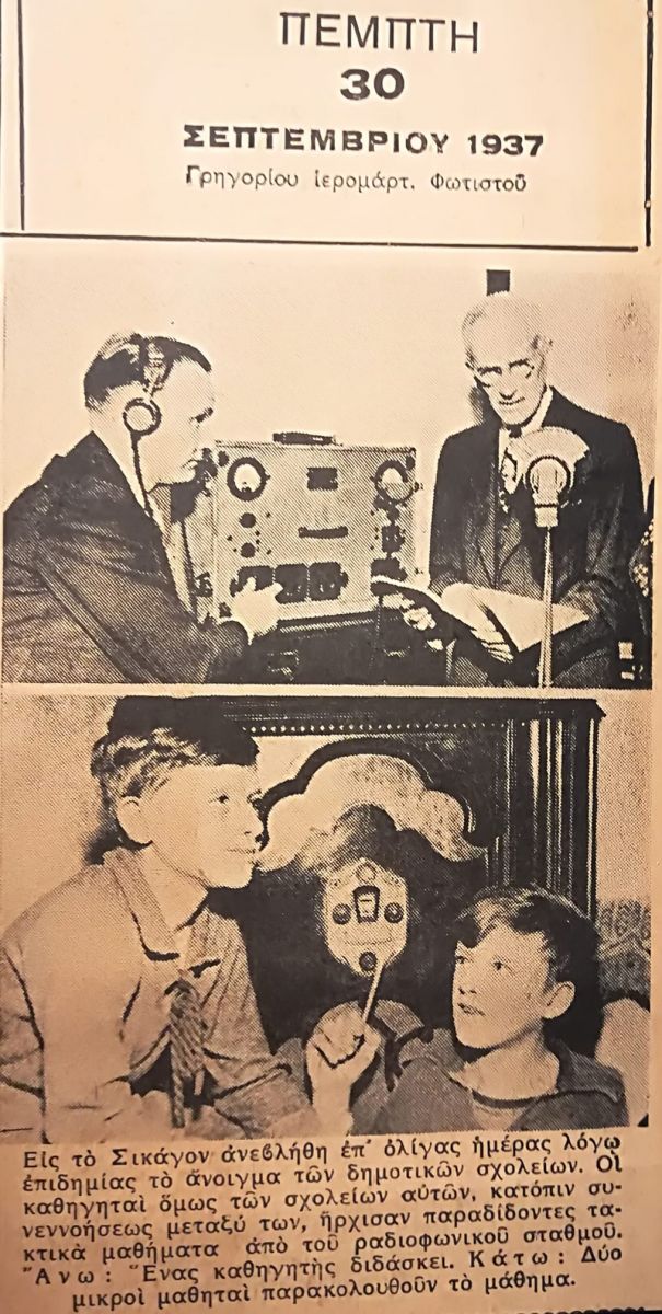 Το 1937 υπήρξε μεγάλη επιδημία γρίπης στο Σικάγο. Οι καθηγητές, για να μην κλείσουν, τα σχολεία συνεννοήθηκαν να κάνουν τα μαθήματα μέσω του ραδιοφώνου. Και τότε τα ερτζιανά ήταν στα πρώτα τους βήματα. Τώρα θα ήταν πολύ πιο εύκολο να γίνει.