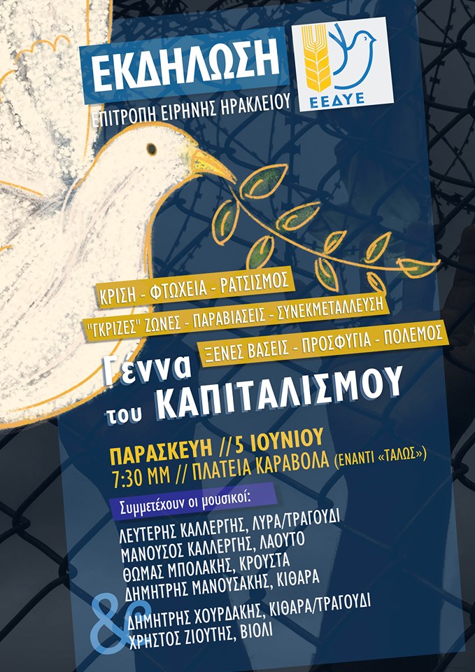 Μια ενδιαφέρουσα εκδήλωση διοργανώνει η Επιτροπή Ειρήνης Ηρακλείου με τίτλο «Γέννα του Καπιταλισμού.