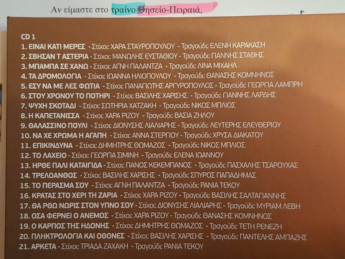 «…Είναι εκπληκτικό. Αυτό το εξαιρετικό ποίημα που δεν είναι απλά στίχος, είναι ένα ποίημα. Και μέσα λοιπόν σε αυτό το διπλό CD υπάρχουν αυτές οι δώδεκα ερμηνείες και 16 συνολικά τραγούδια, τα οποία είναι στίχος – μουσική δικά μου. Έτσι κάπως τα χώρισα. Και είχα αρκετά χρόνια να βγάλω μια προσωπική δουλειά με δικά μου τραγούδια. Και μέσα σε αυτό το προσωπικό CD κατάφερα και τα έφτιαξα και αυτά».