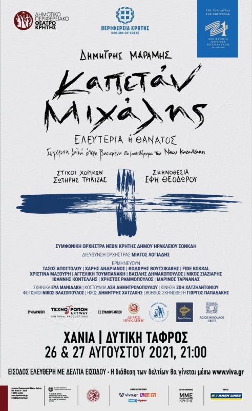 Την Πέμπτη 26/08 και την Παρασκευή 27/08, σε δυο παραστάσεις ελεύθερες στο κοινό, ο “Καπετάν Μιχάλης” στα 200 χρόνια από την ελληνική επανάσταση δίνει τον παλμό της προεπαναστατικής περιόδου στην Κρήτη, το αιώνιο πάθος των Κρητικών για την ελευθερία, το μαρτύριο του απαγορευμένου έρωτα, το πάλεμα της ψυχής του ανθρώπου για το δίκαιο, για την τιμή, για τους προγόνους, για την αμαρτία, για την επανάσταση, για τη ζωή και τον θάνατο.