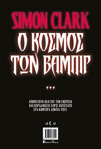 Και μιας και τα τελευταία χρόνια οι κινηματογραφικές εκδόσεις των αγαπημένων μας αιμοδιψών τεράτων έχει μια πολύ τρυφερή και παιδική μορφή… πολύς κόσμος συμπεριλαμβανομένου και του γράφοντα, αρέσκεται να διαβάζει βιβλία με θέμα το βαμπιρισμό. Ένα από αυτά κυκλοφορεί από τις εκδόσεις ΟΞΥ με τίτλο «Ο Κόσμος των Βαμπίρ» του Άγγλου συγγραφέα Simon Clark, συγγραφέα με αρκετά βιβλία γύρω από το μυθιστόρημα τρόμου! Κι ενώ έχει κερδίσει το Βρετανικό Βραβείο Λογοτεχνίας του Φανταστικού για το «Humty’s Bones», το παρoν πόνημα το βρίσκω σχετικά μέτριο από άποψης πλοκής ή καλύτερα να πω απλοϊκό!