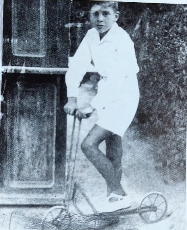 Ο δωδεκάχρονος Μίκης στη Χίο το 1937. Όταν έκανε τα πρώτα του ταξίδια με το ποδήλατο-πατίνι και με τα βιβλία: Ιούλιος Βερν, “Οι άθλιοι” και “Η Παναγία των Παρισίων” του Ουγκώ και άλλα από τη σειρά του Ελευθερουδάκη.