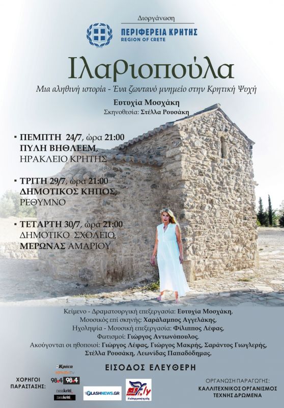 Θεατρική παράσταση «Ιλαριοπούλα», Μια αληθινή ιστορία – ένα ζωντανό μνημείο στην κρητική ψυχή, από την Περιφέρεια Κρήτης
