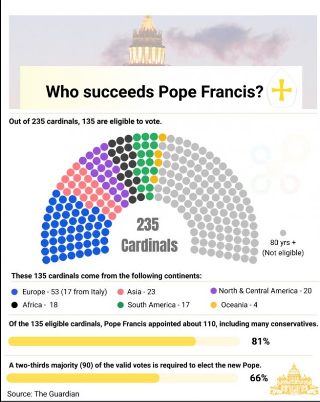 Στο κονκλάβιο αναμένεται να παραστούν 135 καρδινάλιοι – εκλέκτορες, ενώ στο ισχύον Αποστολικό Σύνταγμα το άρθρο 33 του «Romano pontifici eligendo» γράφει ξεκάθαρα: «Ο μέγιστος αριθμός των εκλεκτόρων καρδιναλίων δεν υπερβαίνει τους 120».