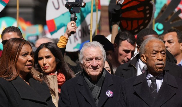 Δεκάδες χιλιάδες άνθρωποι διαδήλωσαν στους δρόμους της Νέας Υόρκης, όπου ο ηθοποιός Ρόμπερτ Ντε Νίρο, σφοδρός επικριτής του Ντόναλντ Τραμπ, ηγήθηκε της πορείας.