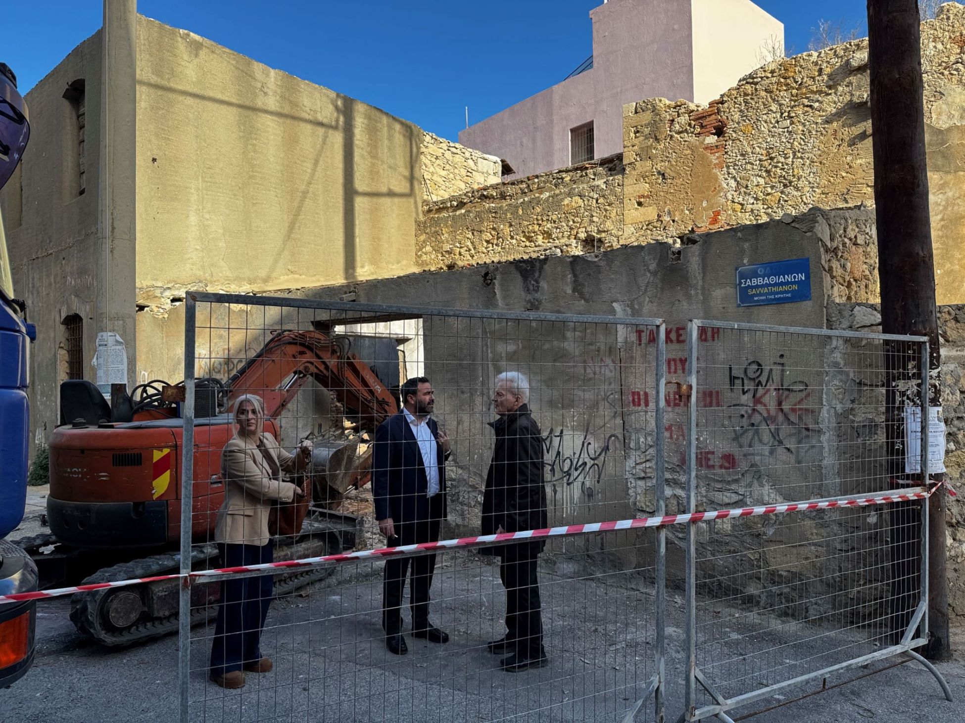 Σε αυτοψία των προκαταρκτικών εργασιών που πραγματοποιούνται στη Φάμπρικα Ανωγειανάκη στην περιοχή της Αγίας Τριάδας προχώρησε ο Δήμαρχος Ηρακλείου Αλέξης Καλοκαιρινός, μαζί με τον Αντιδήμαρχο Τεχνικών Υποδομών & Βιώσιμης Κινητικότητας Γιώργο Σισαμάκη, την Πρόεδρο της 1ης Δημοτικής Κοινότητας Θεοδοσία Αγγελιδάκη και στελέχη της Τεχνικής Υπηρεσίας, νωρίς το πρωί της Τρίτης 18/3.