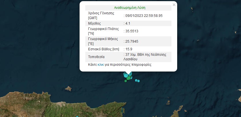 Συνεχίζεται ο "χορός" των ρίχτερ στο Λασίθι- Νέος σεισμός βόρεια της Νεάπολης
