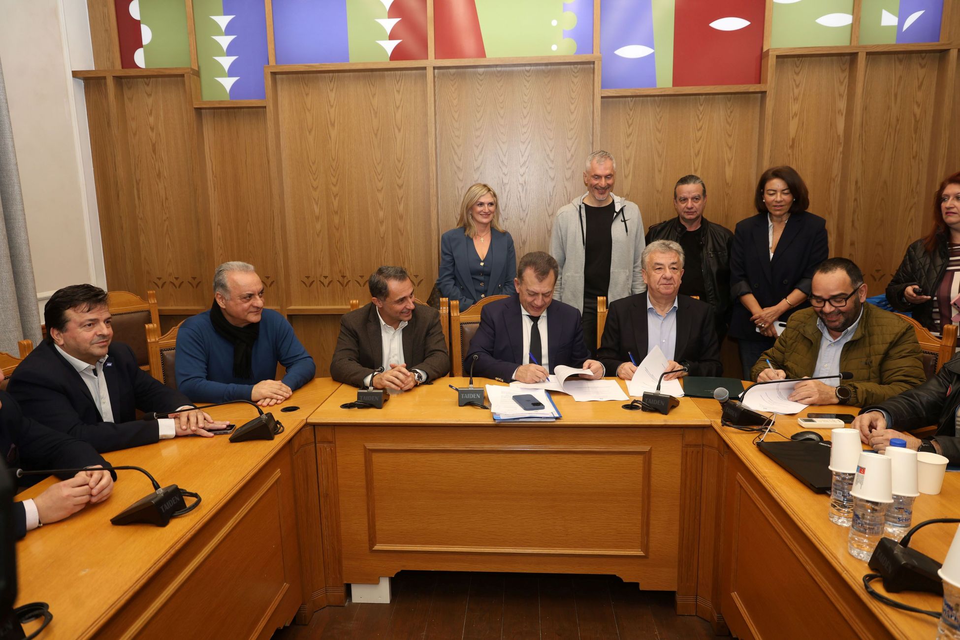 Στην υπογραφή παραβρέθηκαν ο Βουλευτής Ηρακλείου Μάξιμος Σενετάκης, ο Ευρωβουλευτής Μανόλης Κεφαλογιάννης, ο Αναπληρωτής Περιφερειάρχης Γιώργος Πιτσούλης, ο Αντιπεριφερειάρχης Ηρακλείου Νίκος Συριγωνάκης, ο Πρόεδρος της ΔΕΕΠ Ηρακλείου Κώστας Γιαννουλάκης, εκπρόσωποι φορέων και μέλη της Διοίκησης του ΕΑΚΗ.