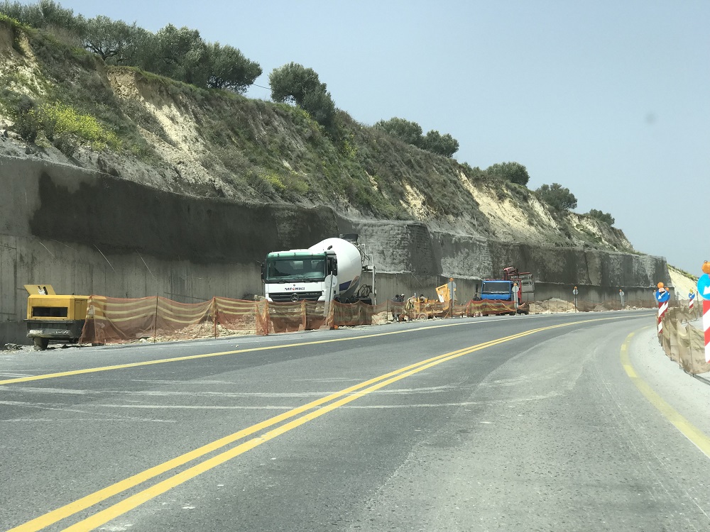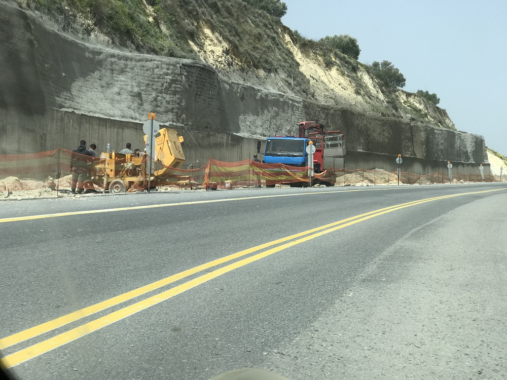 Προ ημερών ο εργολάβος που έχει αναλάβει την συγκεκριμένη κατασκευή άρχισε ξανά να αποκαθιστά τα προβληματικά σημεία του έργου του σηκώνοντας τα χοντρά πλέγματα από το έδαφος και ρίχνοντας επάνω τους τόνους τσιμέντου για να τα σταθεροποιήσει πάνω στο χώμα.