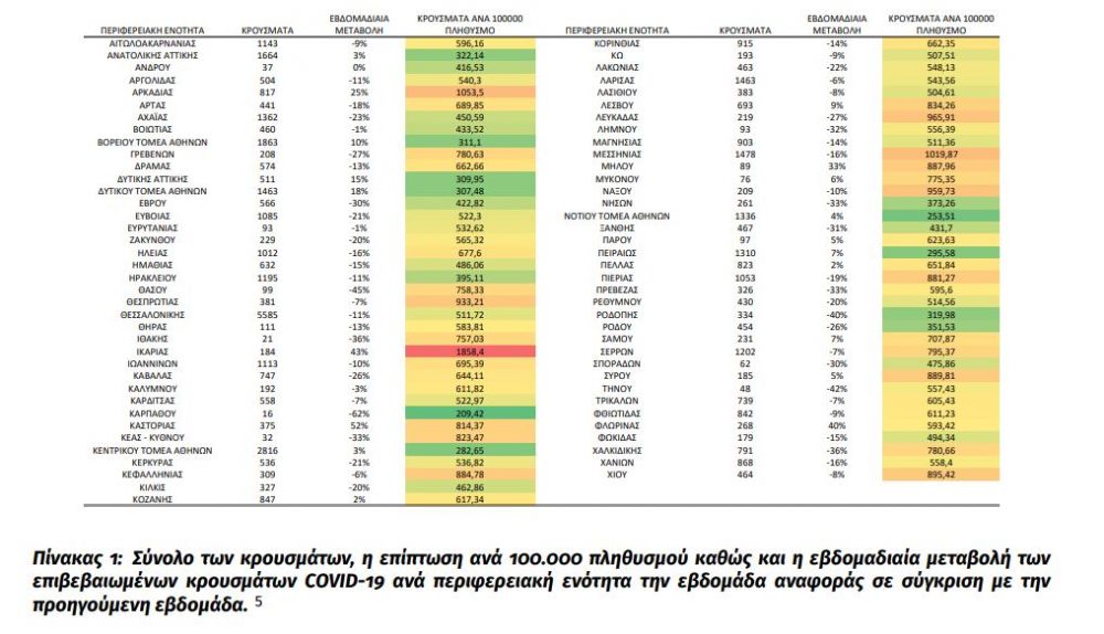 Να θυμίσουμε πως σε επίπεδο χώρας την εβδομάδα από 22 έως και 28 Αυγούστου καταγράφηκαν 50.579 κρούσματα Covid-19 .
