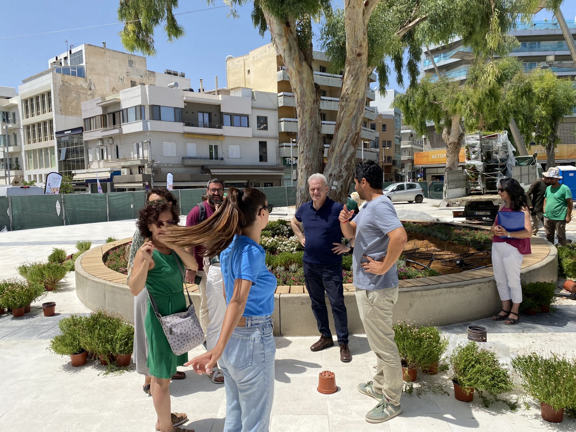 καταστημάτων έτσι ώστε για όλο το καλοκαίρι να έχουν τη δυνατότητα να λειτουργήσουν απρόσκοπτα και πλέον μέσα στο φθινόπωρο να γίνουν οι εργασίες που τα αφορούν. Αλλά εντωμεταξύ θα έχουν παραδοθεί μεγάλα κομμάτια της πλατείας από τη μεριά που έχει την γενική κοινή χρήση και ελπίζω ότι αυτό θα είναι κάτι που θα αρέσει στους Ηρακλειώτες και κυρίως θα το νιώσουν ότι βελτιώνει τις συνθήκες της κυκλοφορίας τους και συνεπώς θα το υποδεχθούν σαν ένα έργο που συμβάλλει στην ποιότητα ζωής στην πόλη μας.».