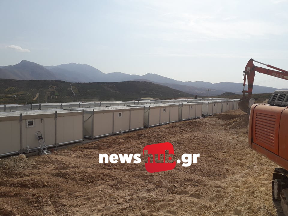 Αρκαλοχώρι: Τοποθετήθηκαν οι οικίσκοι και οι αίθουσες διδασκαλίας για τους σεισμόπληκτους (ΦΩΤΟ)