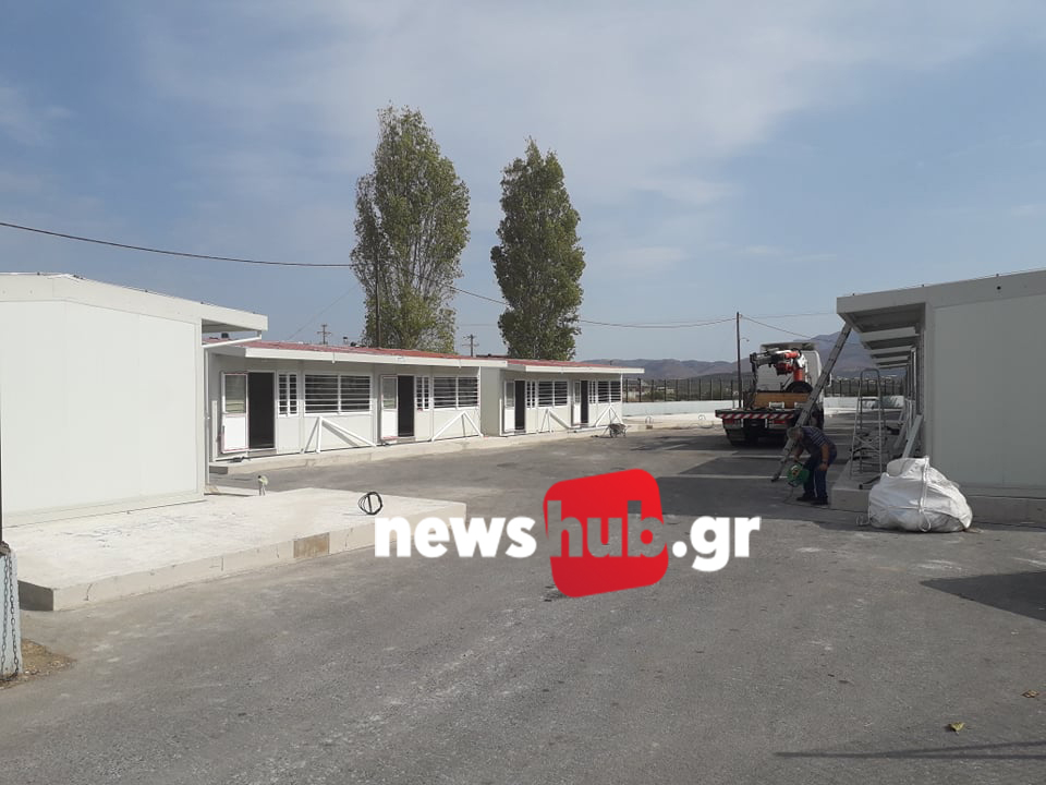 Την ίδια ώρα στο Αρκαλοχώρι βρίσκονται και οι πρώτες επτά λυόμενες αίθουσες που θα χρησιμοποιηθούν ως αίθουσες διδασκαλίες. Έχουν τοποθετθεί στις τσιμεντένιες βάσεις τους όπως και οι τουαλέτες για τους μικρούς μαθητές.