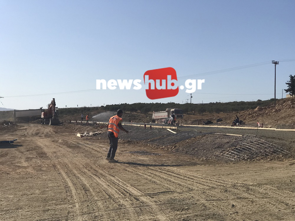 Στο Αρκαλοχώρι πέρα από το σημείο που διαμορφώνεται με συνδέσεις νερού, αποχέτευσης και ρεύματος, οι μπουλντόζες και οι εκσκαφείς δουλεύουν και σε έκταση ακριβώς πάνω από αυτό το χώρο, και κάτω από το νέο νεκροταφείο του οικισμού, έτσι ώστε να πάρει επίπεδη μορφή.