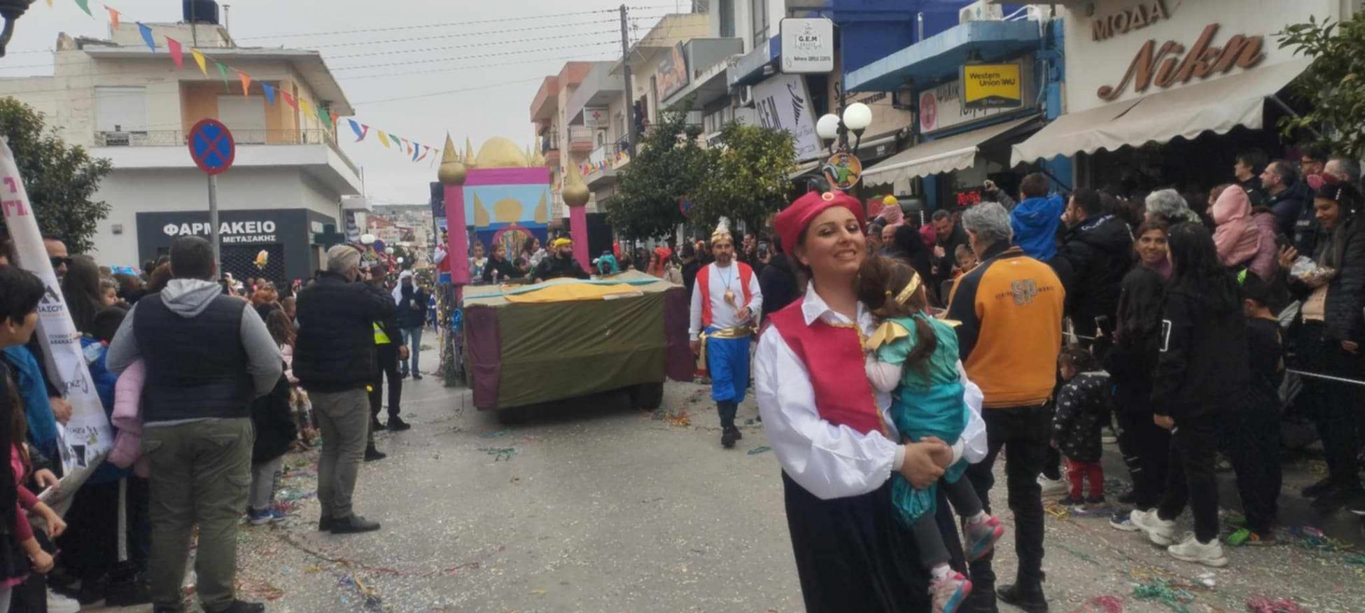 Μικροί και μεγάλοι χόρευαν στον ξέφρενο ρυθμό της αποκριάτικης μουσικής, συμμετέχοντας ενεργά στη μεγάλη αυτή γιορτή του τόπου!
