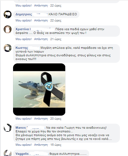Είναι πραγματικά λυπηρό ένας νέος άνθρωπος, ένας νικητής των αιθέρων, να φύγει τόσο άδικα. Καλό σου ταξίδι Μανώλη", αναφέρει το συλλυπητήριο μήνυμα.