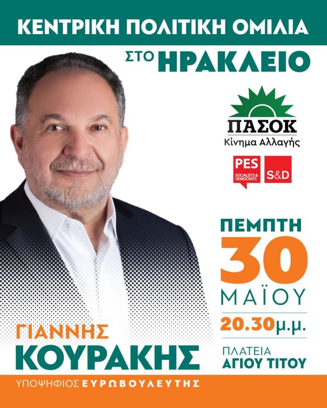Αυριο θα πραγματοποιηθεί η κεντρική προεκλογική ομιλία του υποψήφιου ευρωβουλευτή με το ΠΑΣΟΚ - Κίνημα Αλλαγής Γιάννη Κουράκη εν όψει των Ευρωεκλογών της 9ης Ιουνίου.