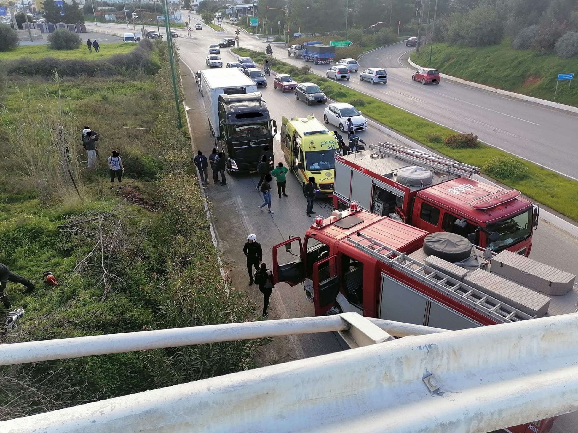 Χανιά: Φορτηγό έπεσε από γέφυρα του ΒΟΑΚ – Απεγκλωβίστηκε μόνος του ο οδηγός (Φωτο)