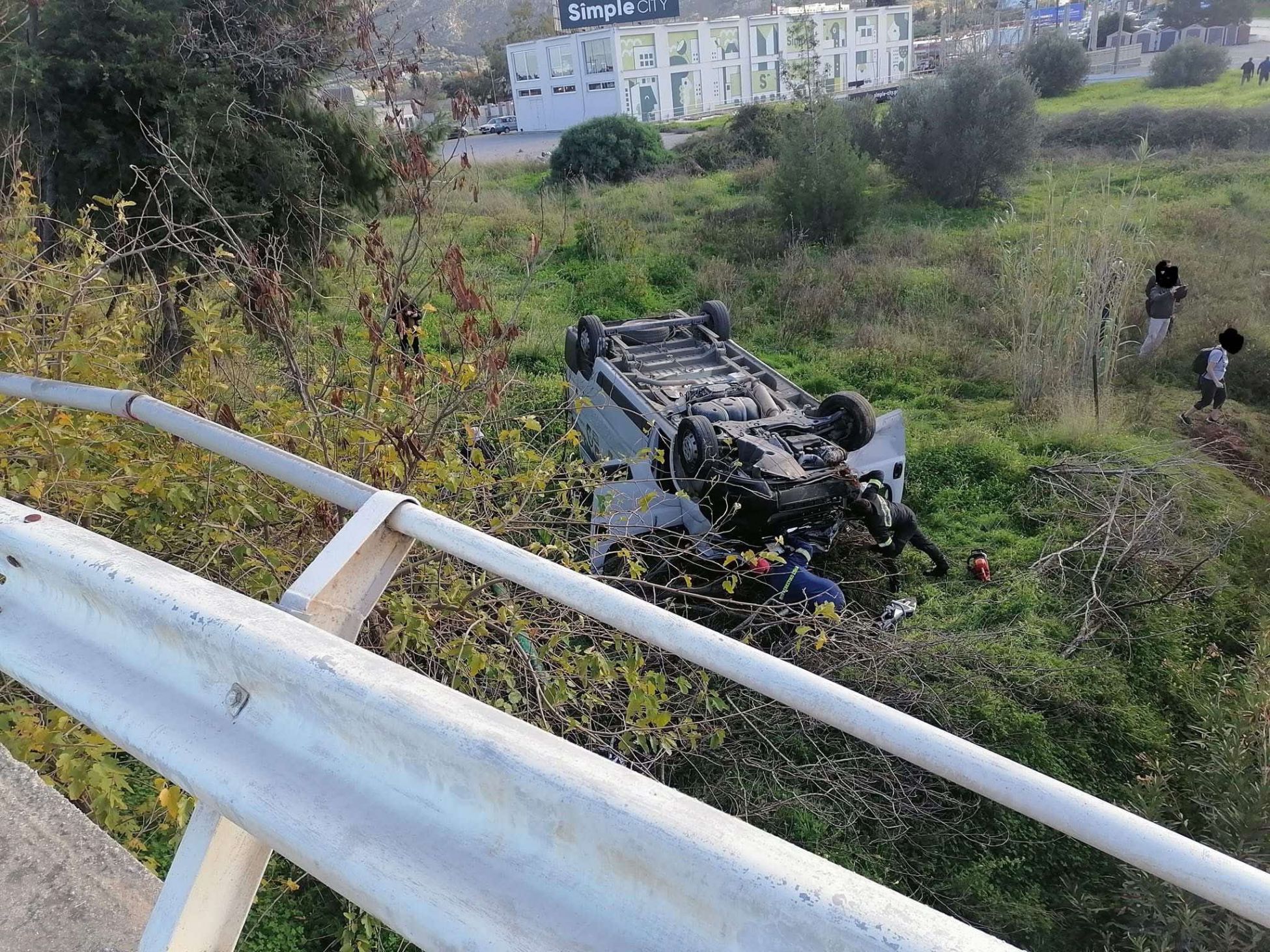 Στο σημείο έσπευσαν δύο οχήματα της πυροσβεστικής αλλά δεν χρειάστηκε να επέμβουν, καθώς ο οδηγός κατάφερε να βγει από το όχημα μόνος του, ενώ στη συνέχεια παρελήφθη από ασθενοφόρο του ΕΚΑΒ, έχοντας τις αισθήσεις του.