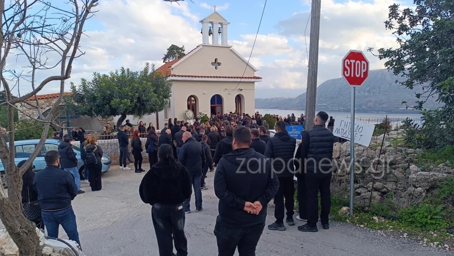 Σπαραγμός στην κηδεία του 22χρονου Παναγιώτη, που σκοτώθηκε τα ξημερώματα του Σαββάτου στο τροχαίο που σημειώθηκε στην λεωφόρο Σούδας.
