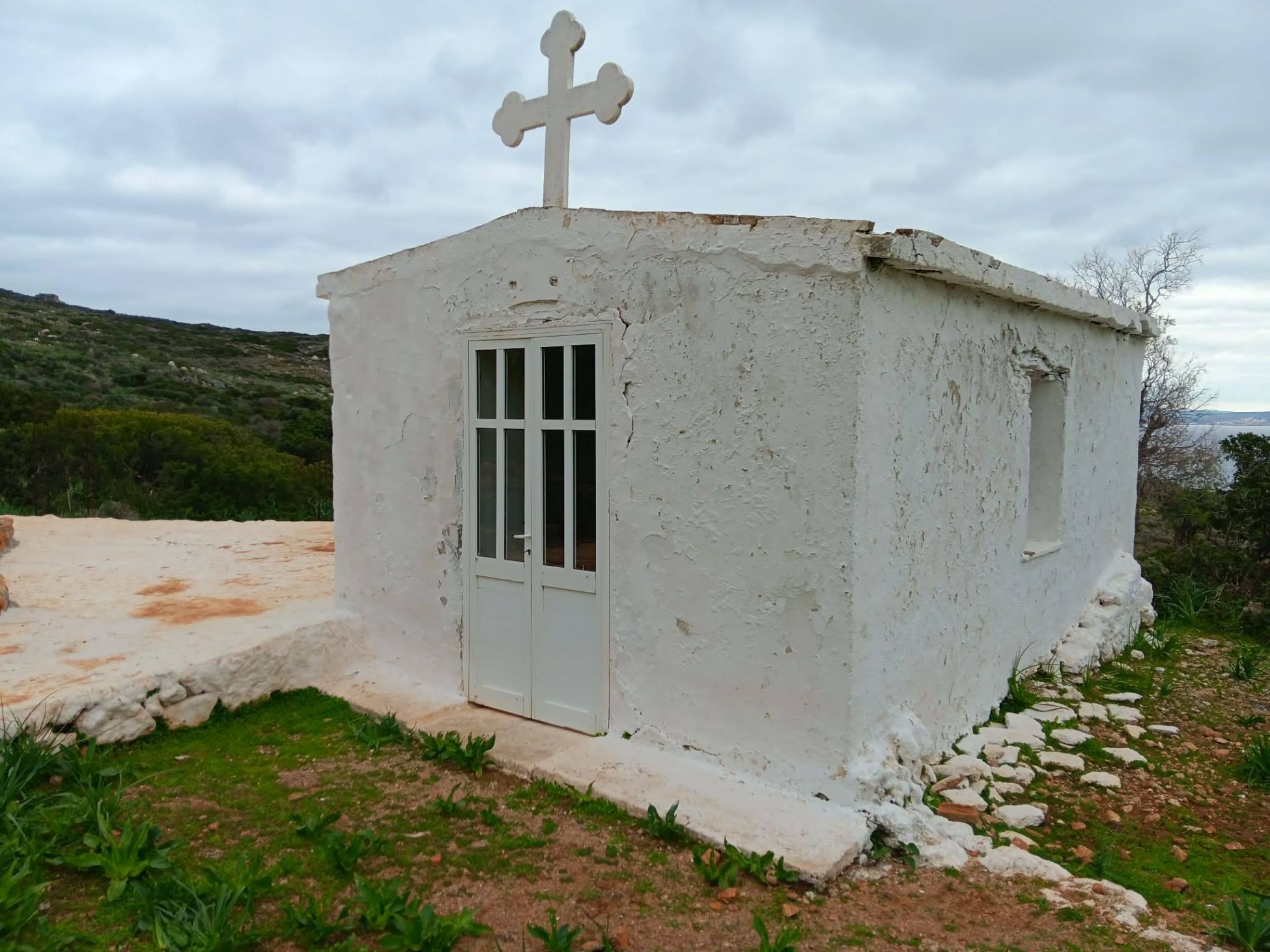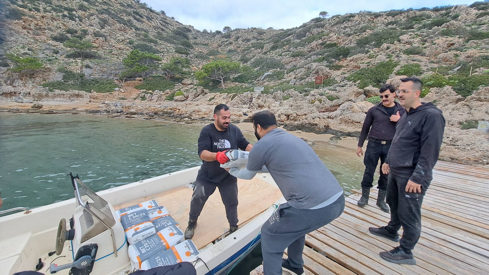 Έπρεπε με βάρκα να μεταφερθούν όλα τα υλικά μέχρι την αυτοσχέδια προβλήτα του Θοδωρού κι από εκεί με τα χέρια σε μια μεγάλη απόσταση σε ανηφορικό μονοπάτι ως το εκκλησάκι.