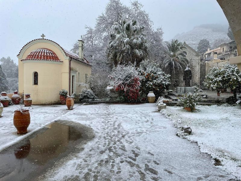 Επίσης, στα λευκά ντύθηκε για λίγο ακόμα και το κέντρο των Χανίων.