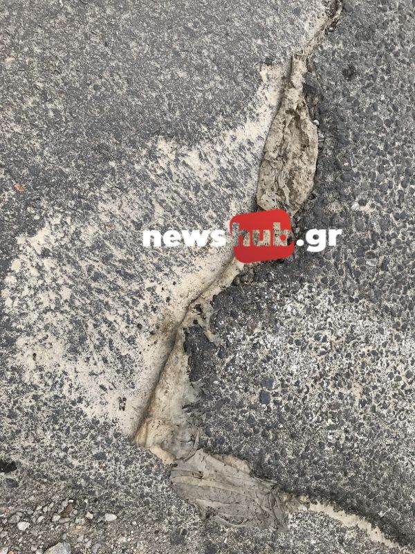 Πάνω στην παλιά άσφαλτο έπεσε νέα και στα σημεία όπου ενώνονται δημιουργείται αυτό το κενό απ’ όπου περισσεύουν κομμάτια πλαστικού (δε γνωρίζουμε αν πρόκειται για άλλο υλικό) το οποίο μπήκε ως υπόστρωμα.